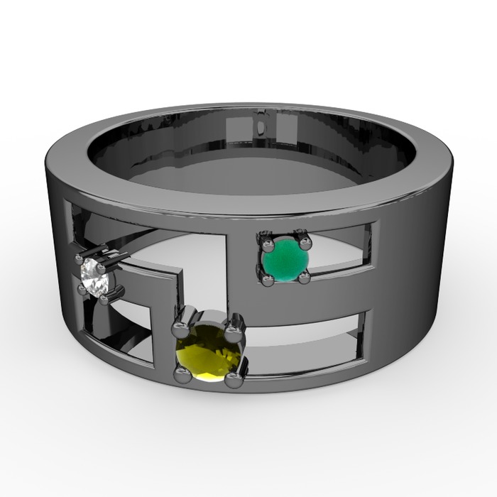 Peridot, pırlanta ve kök zümrüt 925 ayar siyah rodyum kaplama gümüş yüzük (0.036 karat)