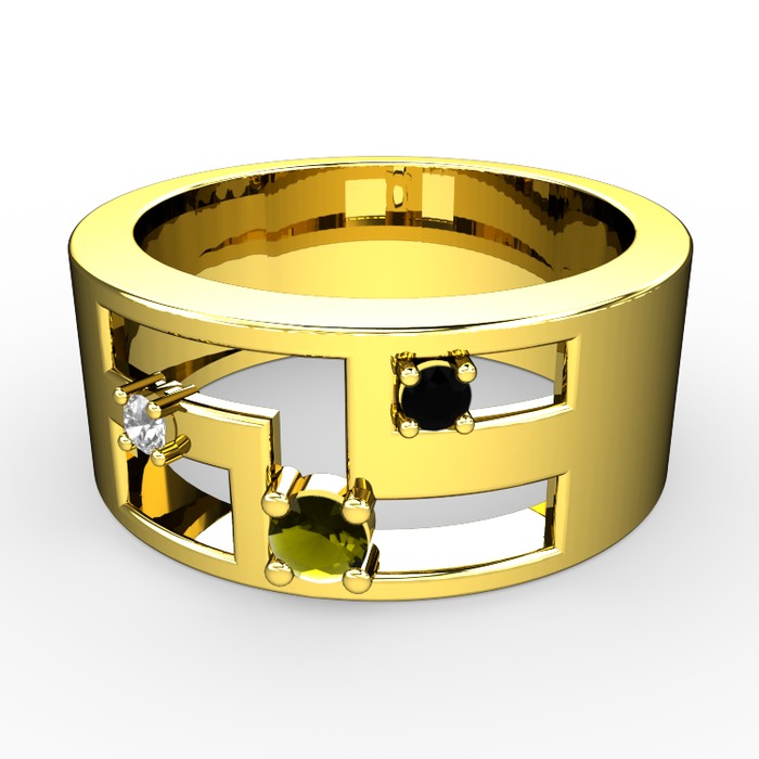 Peridot, pırlanta ve siyah zirkon 14 ayar altın yüzük (0.036 karat)