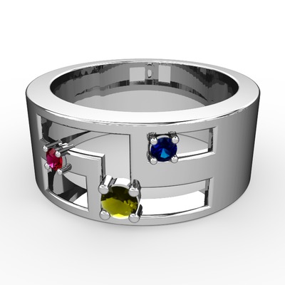 Peridot, rodolit garnet ve lab safir 8 ayar beyaz altın yüzük
