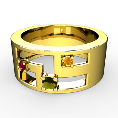 Peridot, rodolit garnet ve sitrin 18 ayar altın yüzük