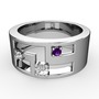 Pırlanta ve ametist 18 ayar beyaz altın yüzük (0.146 karat)
