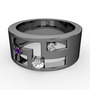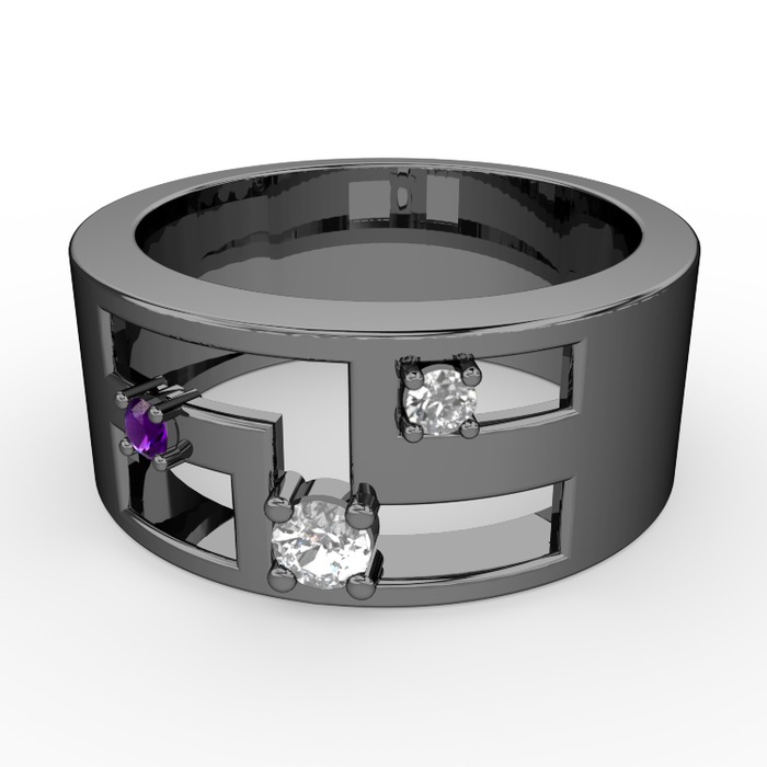Pırlanta, ametist ve swarovski 925 ayar siyah rodyum kaplama gümüş yüzük (0.11 karat)