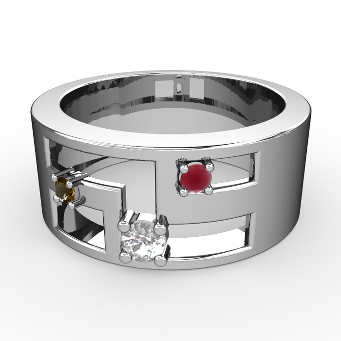 Pırlanta, dumanlı kuvars ve kök yakut 925 ayar gümüş yüzük (0.11 karat)