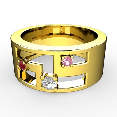 Pırlanta, kök yakut ve pembe kuvars 8 ayar altın yüzük (0.11 karat)