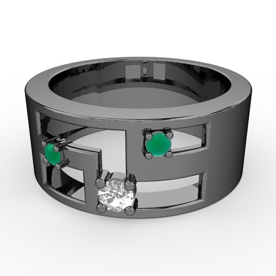 Pırlanta ve kök zümrüt 925 ayar siyah rodyum kaplama gümüş yüzük (0.11 karat)