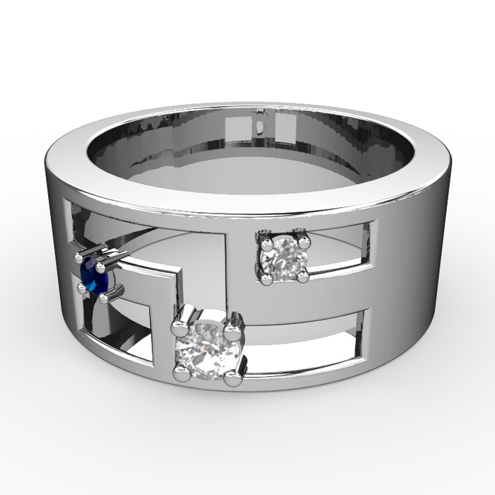 Pırlanta, lab safir ve beyaz zirkon 18 ayar beyaz altın yüzük (0.11 karat)