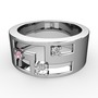 Pırlanta, pembe kuvars ve swarovski 14 ayar beyaz altın yüzük (0.11 karat)