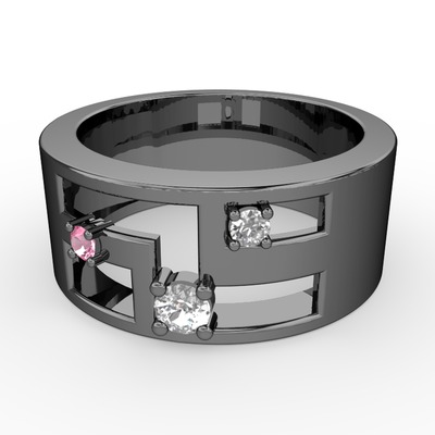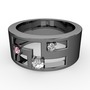 Pırlanta, pembe kuvars ve swarovski 925 ayar siyah rodyum kaplama gümüş yüzük (0.11 karat)