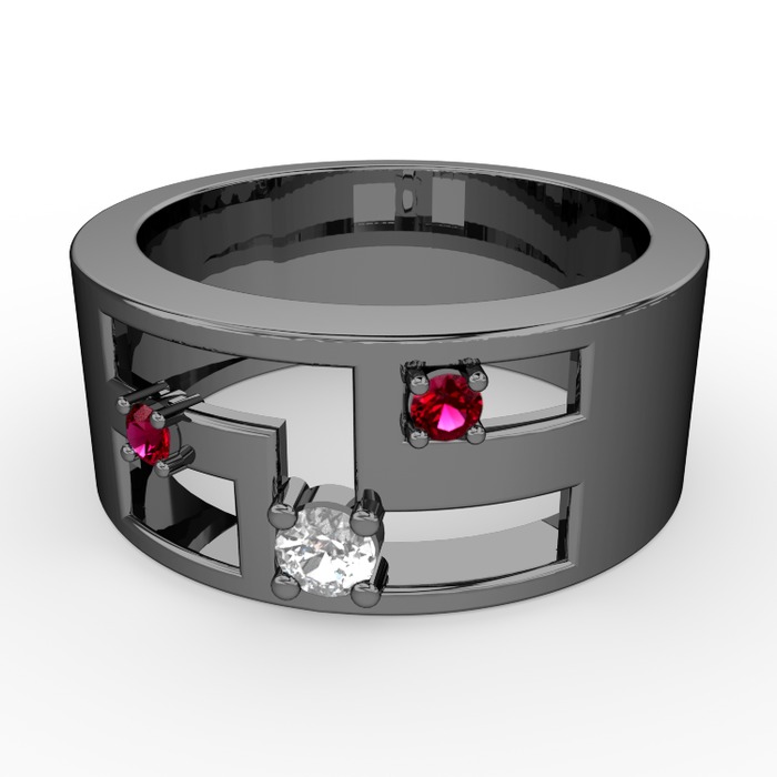 Pırlanta ve rodolit garnet 925 ayar siyah rodyum kaplama gümüş yüzük (0.11 karat)