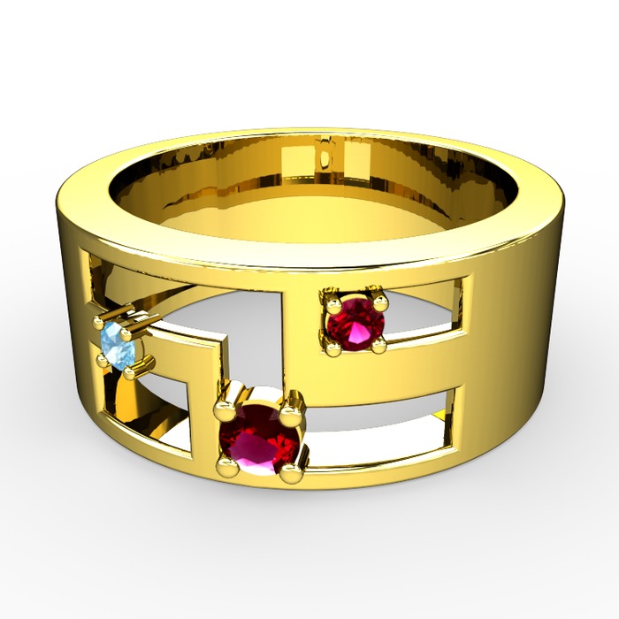Rodolit garnet ve akuamarin 18 ayar altın yüzük