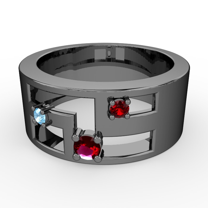 Rodolit garnet, akuamarin ve garnet 925 ayar siyah rodyum kaplama gümüş yüzük