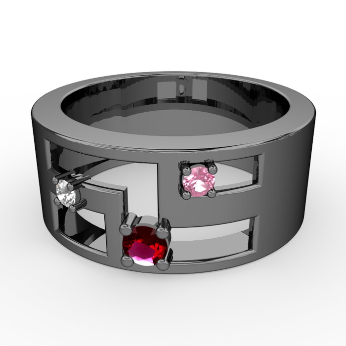 Rodolit garnet, beyaz zirkon ve pembe kuvars 925 ayar siyah rodyum kaplama gümüş yüzük