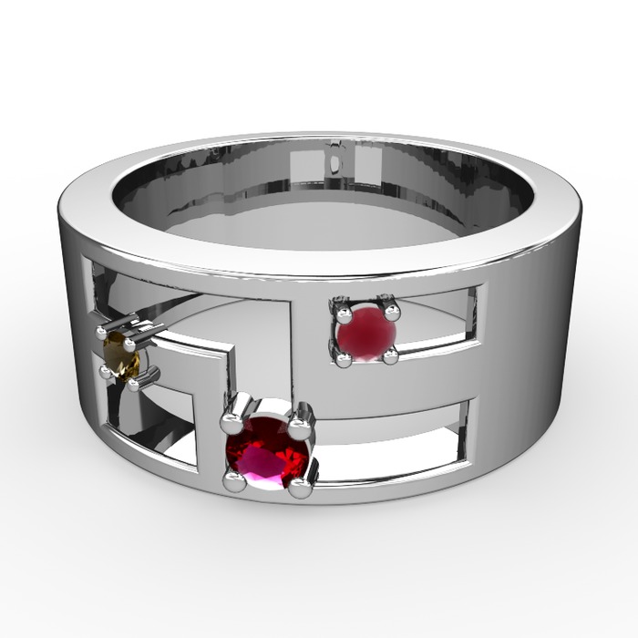 Rodolit garnet, dumanlı kuvars ve kök yakut 925 ayar gümüş yüzük