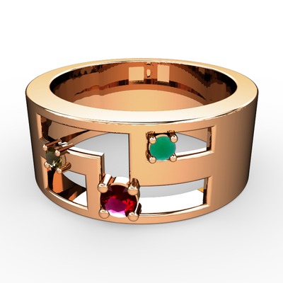 Rodolit garnet, dumanlı kuvars ve kök zümrüt 18 ayar rose altın yüzük