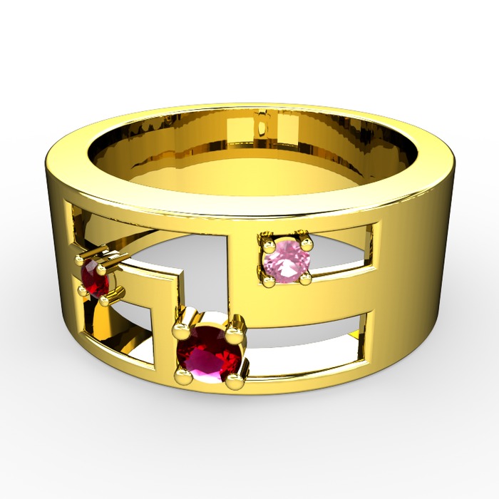 Rodolit garnet, garnet ve pembe kuvars 14 ayar altın yüzük