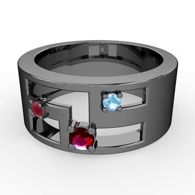 Rodolit garnet, kök yakut ve akuamarin 925 ayar siyah rodyum kaplama gümüş yüzük