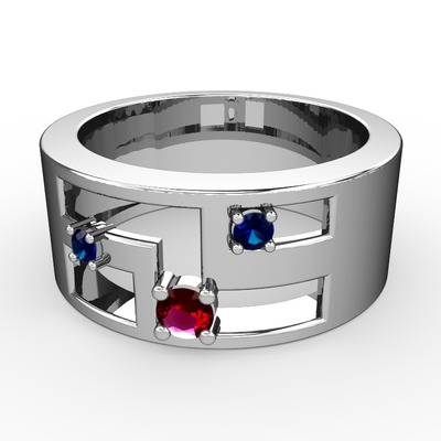 Rodolit garnet ve lab safir 18 ayar beyaz altın yüzük