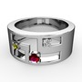 Rodolit garnet, peridot ve beyaz zirkon 8 ayar beyaz altın yüzük
