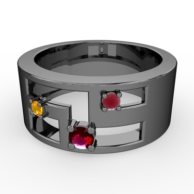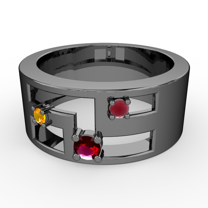 Rodolit garnet, sitrin ve kök yakut 925 ayar siyah rodyum kaplama gümüş yüzük
