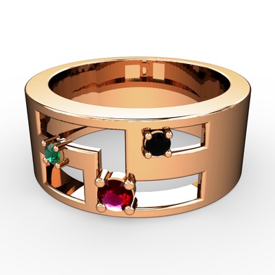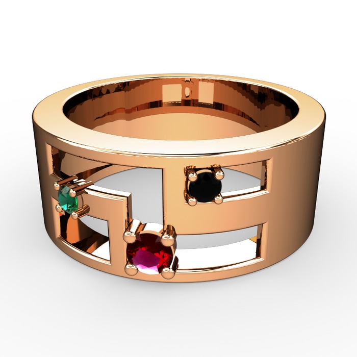 Rodolit garnet, yeşil kuvars ve siyah zirkon 14 ayar rose altın yüzük