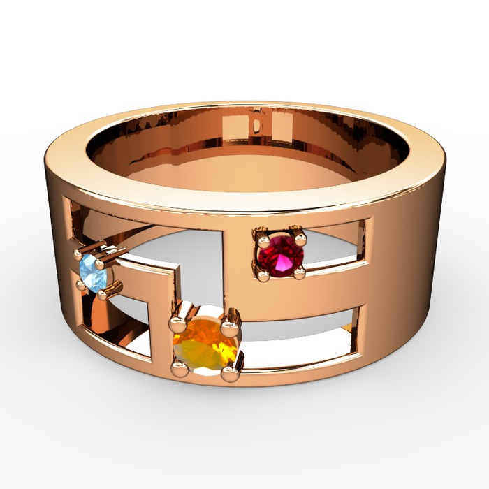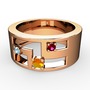 Sitrin, akuamarin ve rodolit garnet 14 ayar rose altın yüzük