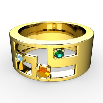 Sitrin, akuamarin ve yeşil kuvars 18 ayar altın yüzük