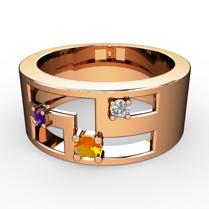 Sitrin, ametist ve beyaz zirkon 8 ayar rose altın yüzük