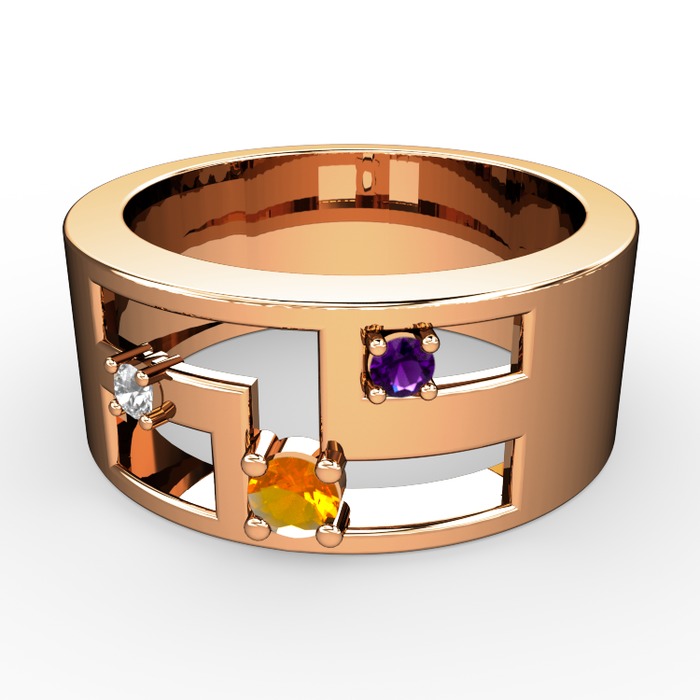 Sitrin, beyaz zirkon ve ametist 925 ayar rose altın kaplama gümüş yüzük