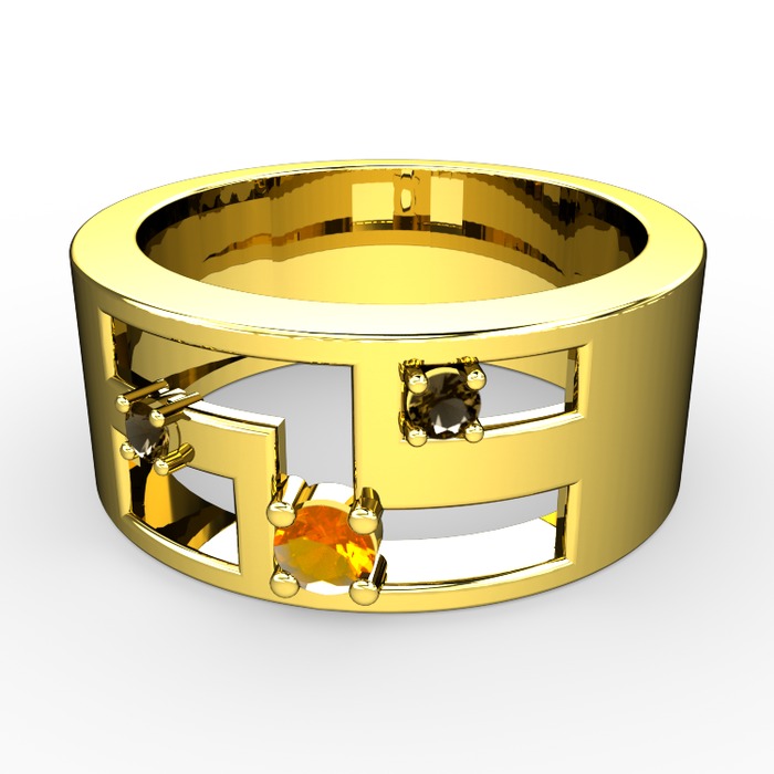 Sitrin ve dumanlı kuvars 925 ayar altın kaplama gümüş yüzük