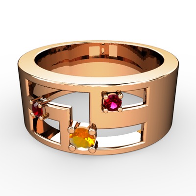 Sitrin, garnet ve rodolit garnet 925 ayar rose altın kaplama gümüş yüzük