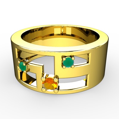 Sitrin ve kök zümrüt 14 ayar altın yüzük