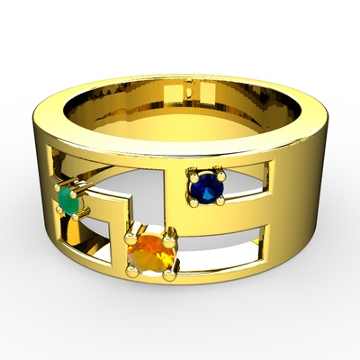 Sitrin, kök zümrüt ve lab safir 14 ayar altın yüzük