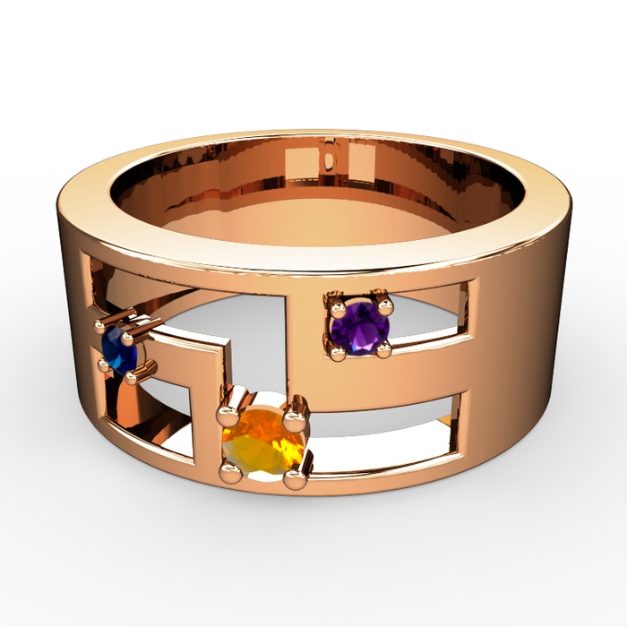 Sitrin, lab safir ve ametist 925 ayar rose altın kaplama gümüş yüzük