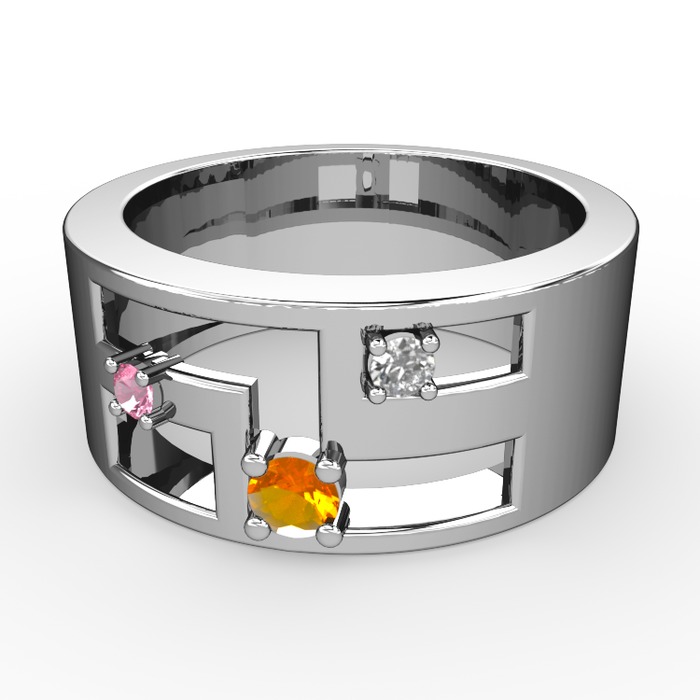 Sitrin, pembe kuvars ve pırlanta 14 ayar beyaz altın yüzük (0.036 karat)
