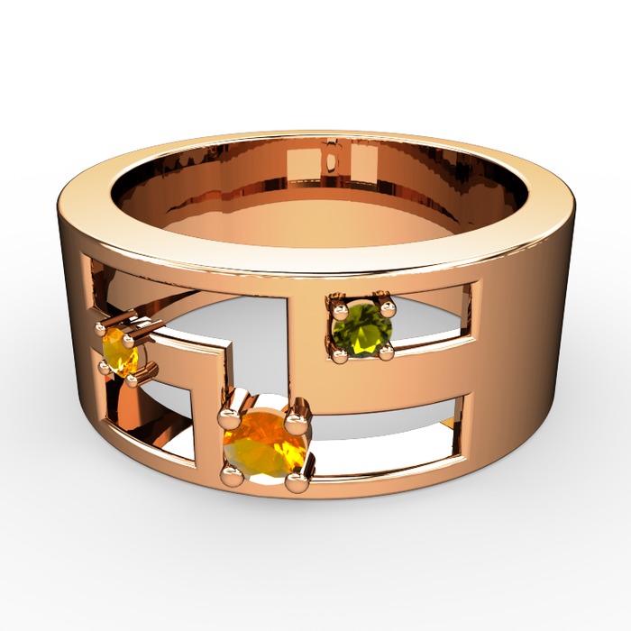 Sitrin ve peridot 14 ayar rose altın yüzük