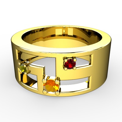 Sitrin, peridot ve garnet 8 ayar altın yüzük