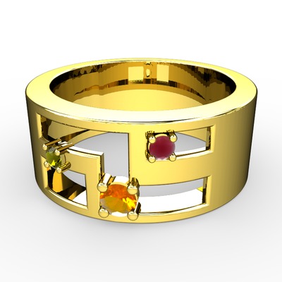 Sitrin, peridot ve kök yakut 18 ayar altın yüzük
