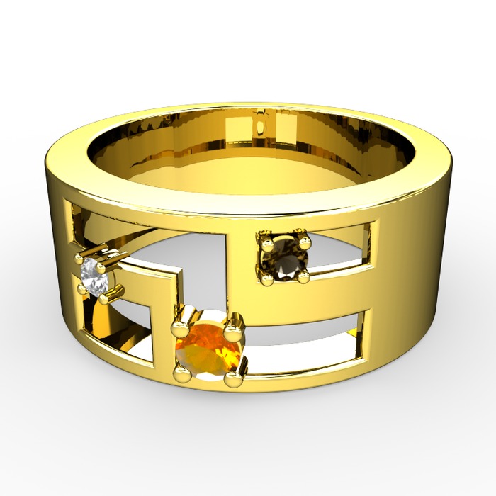 Sitrin, pırlanta ve dumanlı kuvars 8 ayar altın yüzük (0.036 karat)