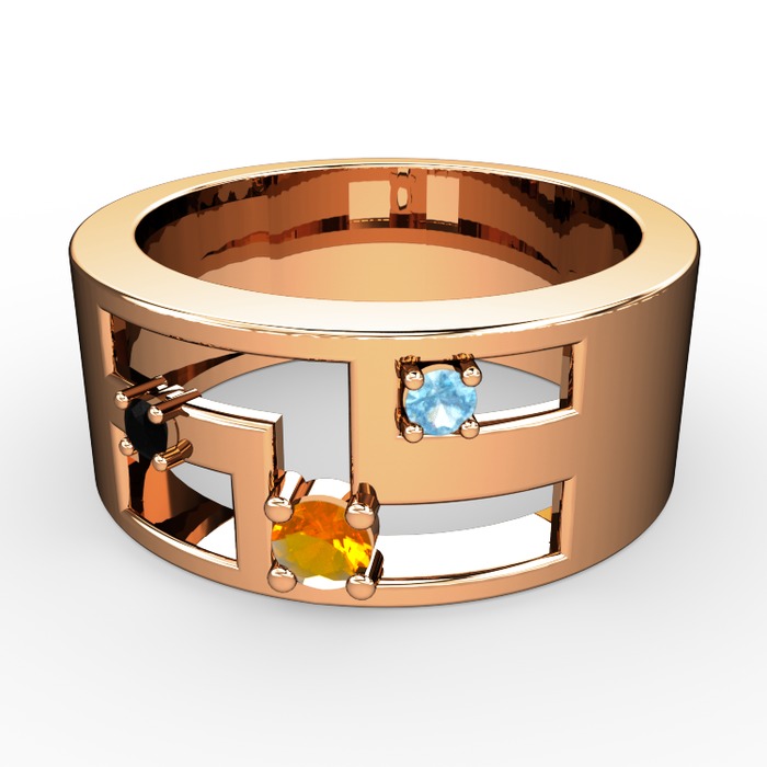 Sitrin, siyah zirkon ve akuamarin 925 ayar rose altın kaplama gümüş yüzük