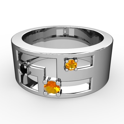 Sitrin ve siyah zirkon 925 ayar gümüş yüzük