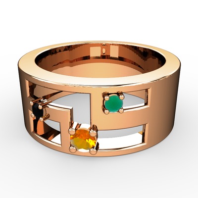 Sitrin, siyah zirkon ve kök zümrüt 8 ayar rose altın yüzük