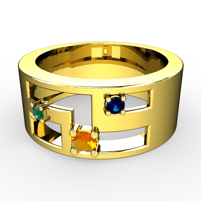 Sitrin, yeşil kuvars ve lab safir 14 ayar altın yüzük