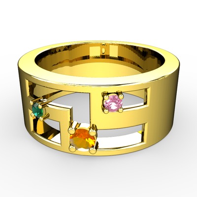Sitrin, yeşil kuvars ve pembe kuvars 925 ayar altın kaplama gümüş yüzük