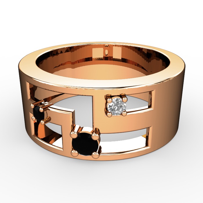 Siyah zirkon ve beyaz zirkon 925 ayar rose altın kaplama gümüş yüzük