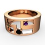 Siyah zirkon, dumanlı kuvars ve ametist 18 ayar rose altın yüzük