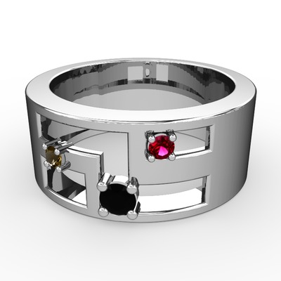Siyah zirkon, dumanlı kuvars ve rodolit garnet 8 ayar beyaz altın yüzük