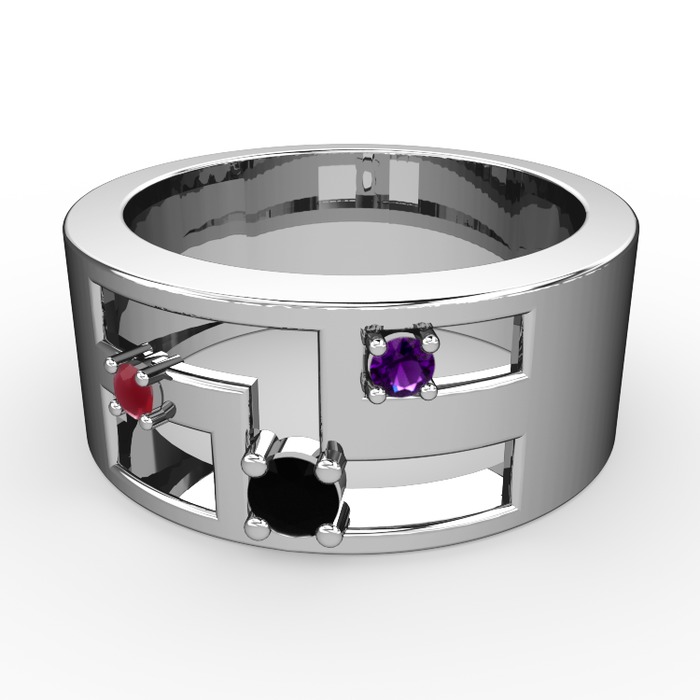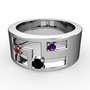 Siyah zirkon, kök yakut ve ametist 8 ayar beyaz altın yüzük