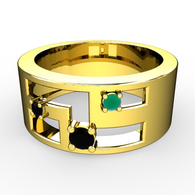 Siyah zirkon ve kök zümrüt 925 ayar altın kaplama gümüş yüzük