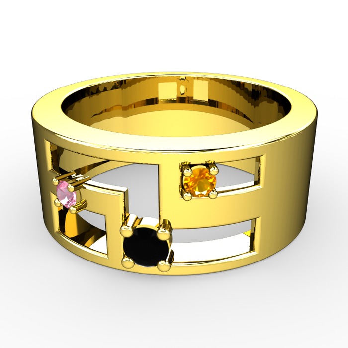 Siyah zirkon, pembe kuvars ve sitrin 14 ayar altın yüzük