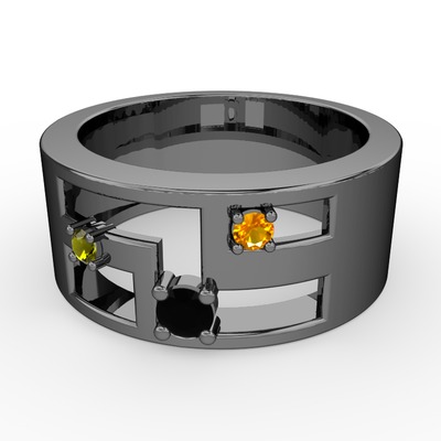 Siyah zirkon, peridot ve sitrin 925 ayar siyah rodyum kaplama gümüş yüzük
